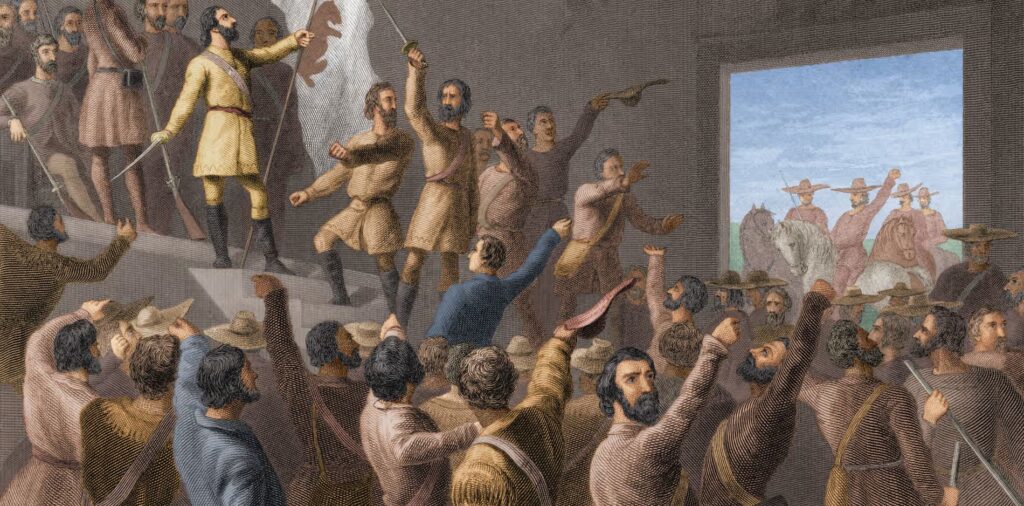 Known as the Bear Flag Revolt, a reference to the short-lived republic’s flag, this event was something between an American invasion and a miniature war of independence. Though the fighting was limited and the country it established lasted less than a month, the Bear Flag Revolt led directly to the American acquisition of what is now its most populous state.